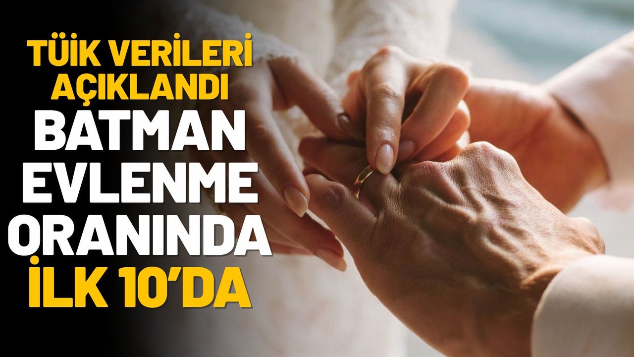 TÜİK’in açıkladığı güncel istatistiklere göre Türkiye genelinde evlenme oranının en fazla olduğu iller arasında Gaziantep, Osmaniye, Şanlıurfa, Adıyaman, Kahramanmaraş, Hatay, Aksaray, Konya, Kilis ve Batman bulunuyor. Listede yer alan Batman, evlilik oranının yüksek olduğu iller arasında öne çıktı.