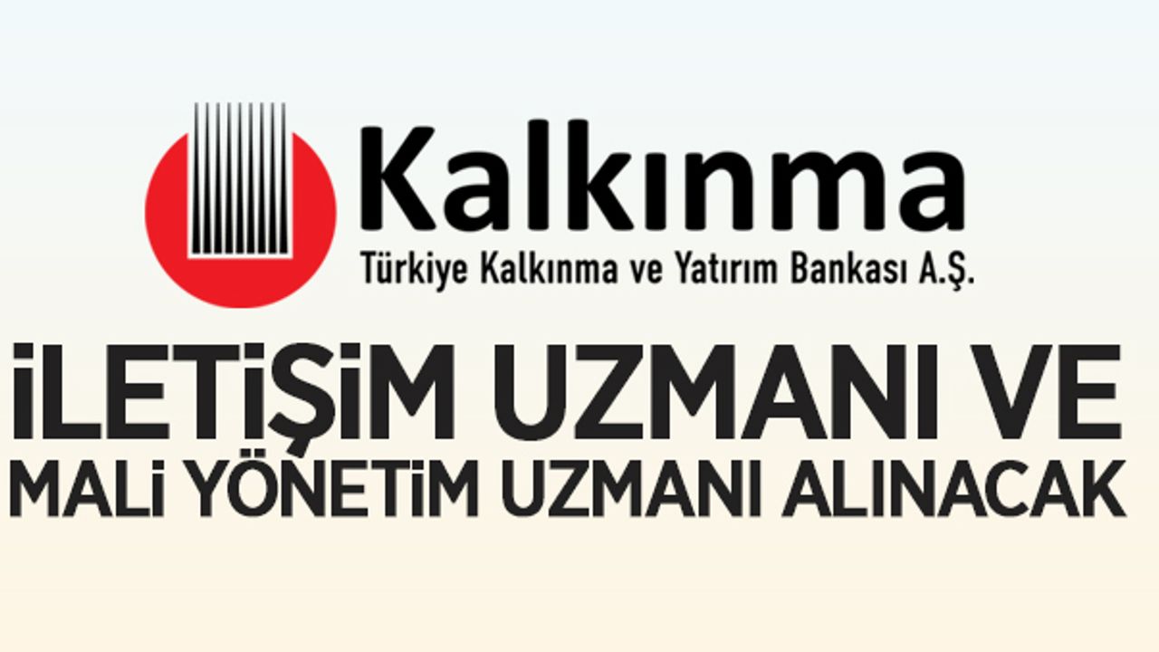 Türkiye Kalkınma ve Yatırım Bankası’nın Dünya Bankası ile işbirliği halinde yürütmekte olduğu “Kayıtlı İstihdam Yaratma Projesi” kapsamında yarı zamanlı istihdam edilmek üzere İletişim Uzmanı ve Mali Yönetim Uzmanı alınacak.