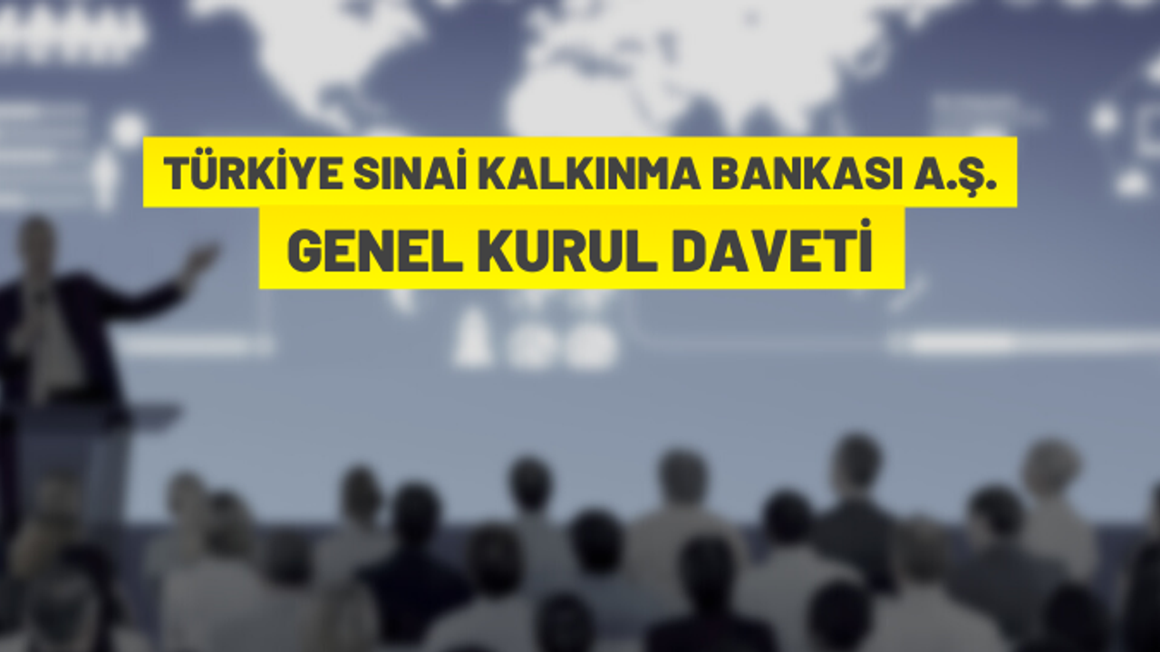 Basın İlan Kurumu İlan Portali ilan.gov.tr internet adresinde yayınlanan ilana göre; Türkiye Sınai Kalkınma Bankası A.Ş. Yönetim Kurulu, 2021 yılı faaliyet dönemine ilişkin gündemindeki konuları görüşmek ve karara bağlamak üzere pay sahiplerini Olağan Genel Kurul Toplantısına davet etti. Duyuruda, toplantının 29 Mart 2022 Salı günü saat 14.00’de Meclisi Mebusan Cad. No. 81 Fındıklı, İstanbul adresindeki Banka merkezinde yapılacağı belirtildi. Pay sahiplerinin Olağan Genel Kurul Toplantısına iştirak edebilmeleri ve oy kullanabilmeleri için paylarını Merkezi Kayıt Kuruluşu A.Ş. (MKK) nezdinde bloke ettirmelerine gerek bulunmadığı, toplantıya fiziki veya elektronik ortamda katılım sağlanabileceği kaydedildi.