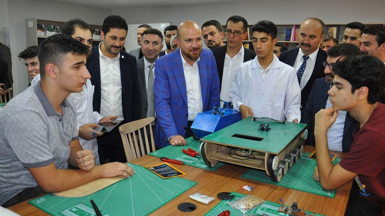 Burada öğrencilerin yaptığı icatları inceleyen Bilal Erdoğan, daha sonra