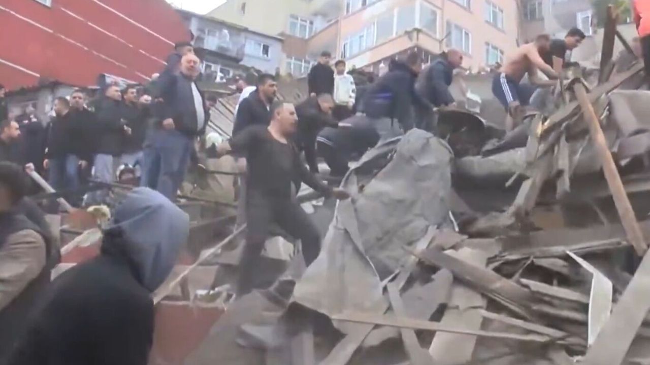 Ayvansaray Mahallesi Ebe Sokak'ta bulunan 2 bina, doğal gaz kaynaklı olduğu değerlendirilen patlama nedeniyle çöktü.