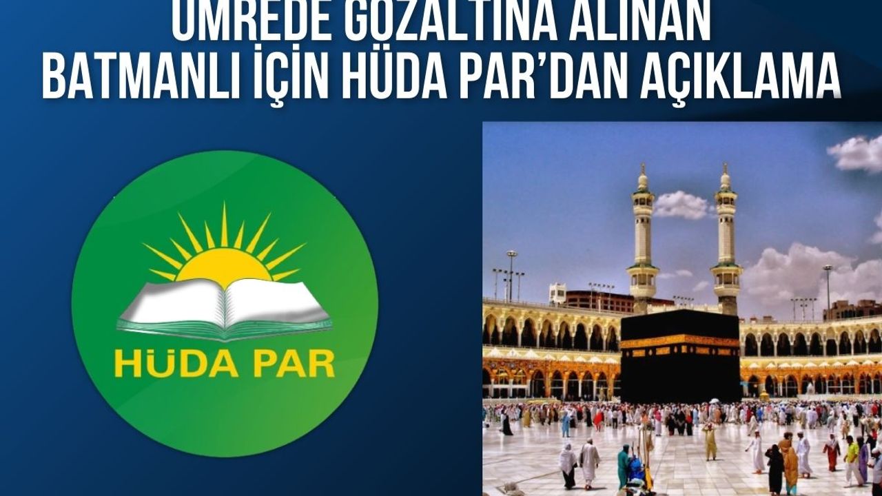 Umre ziyareti için özel bir turizm şirketiyle Türkiye'den Suudi Arabistan'a giden Diyarbakır Dicle Üniversitesi İlahiyat Fakültesi Öğrencisi Muhsine Topaloğlu'nun Suudi Arabistan güvenlik güçlerince haksız ve keyfi bir şekilde gözaltına alınması ile ilgili HÜDA PAR İnsan Hakları ve Hukuk İşleri Başkanlığı tarafından bir açıklama yayımlandı.