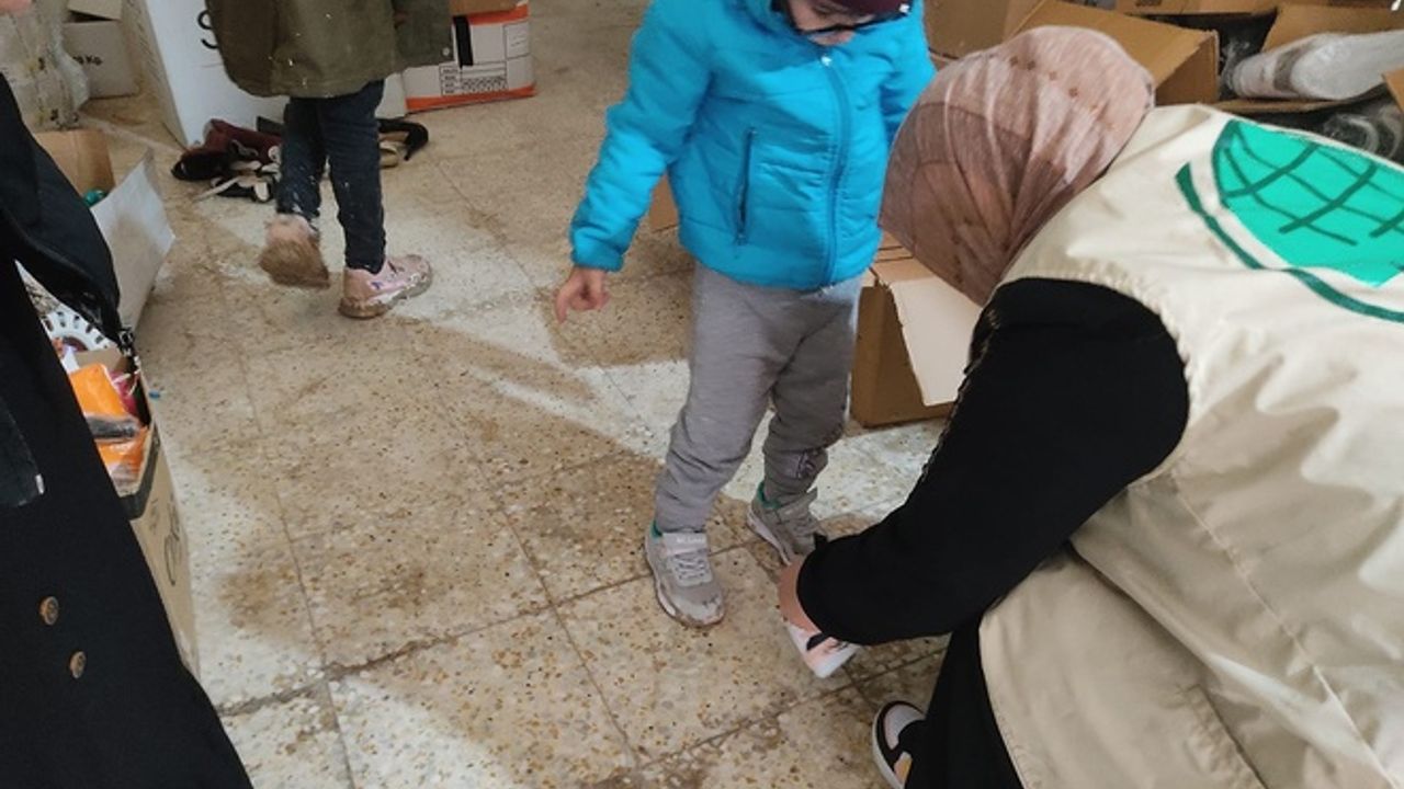 Umut Kervanı gönüllüleri, hayırseverlerin kendilerine ulaştırdığı yardımları dağıttı.