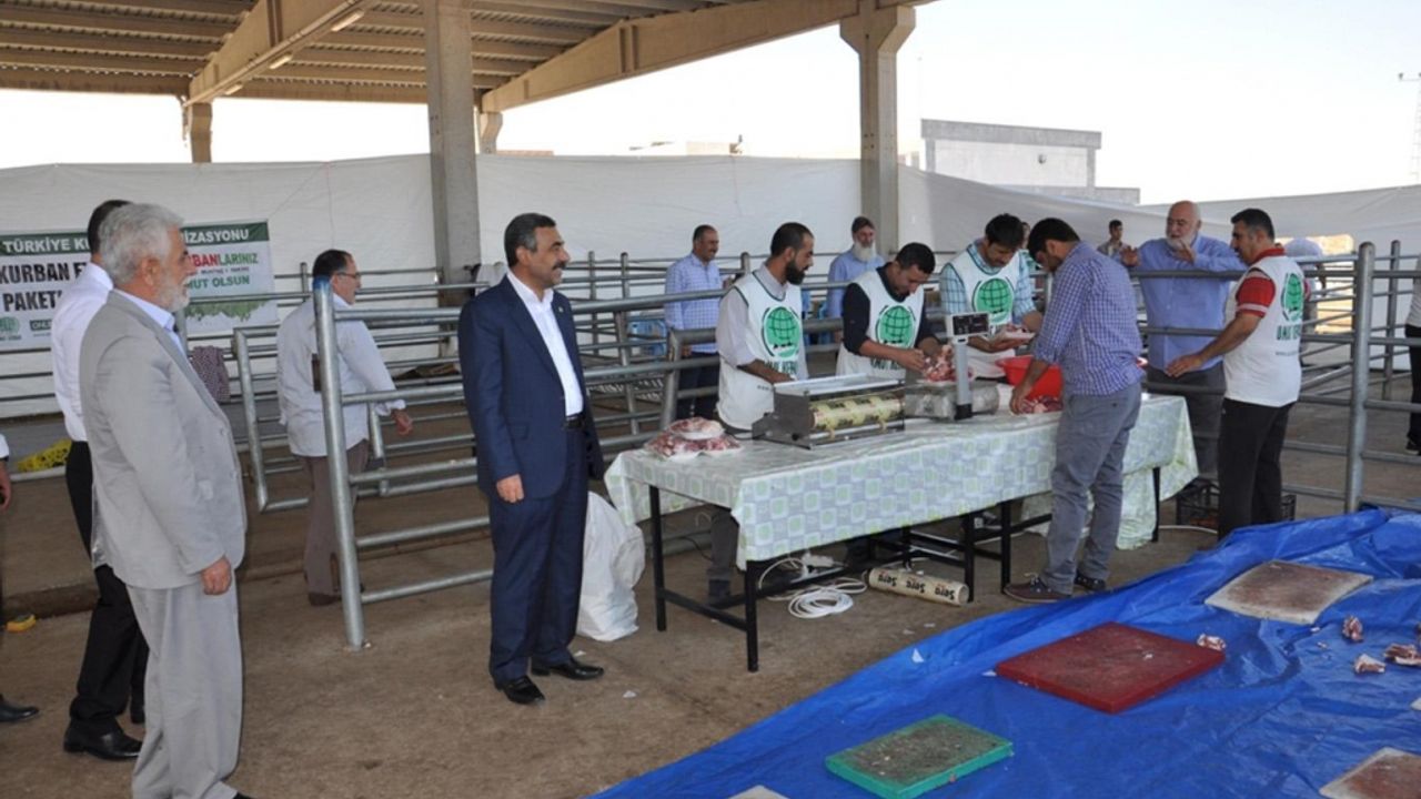 HÜDA PAR Batman İl Başkanı Davut Şahin beraberindeki bir heyetle, Batman İvme Et Entegre Tesisini (mezbahane) ziyaret ederek, bayramın birinci gününden beri hummalı bir çalışma yürüten Umut Kervanı Vakfı'nın çalışmalarını yerinde inceledi.