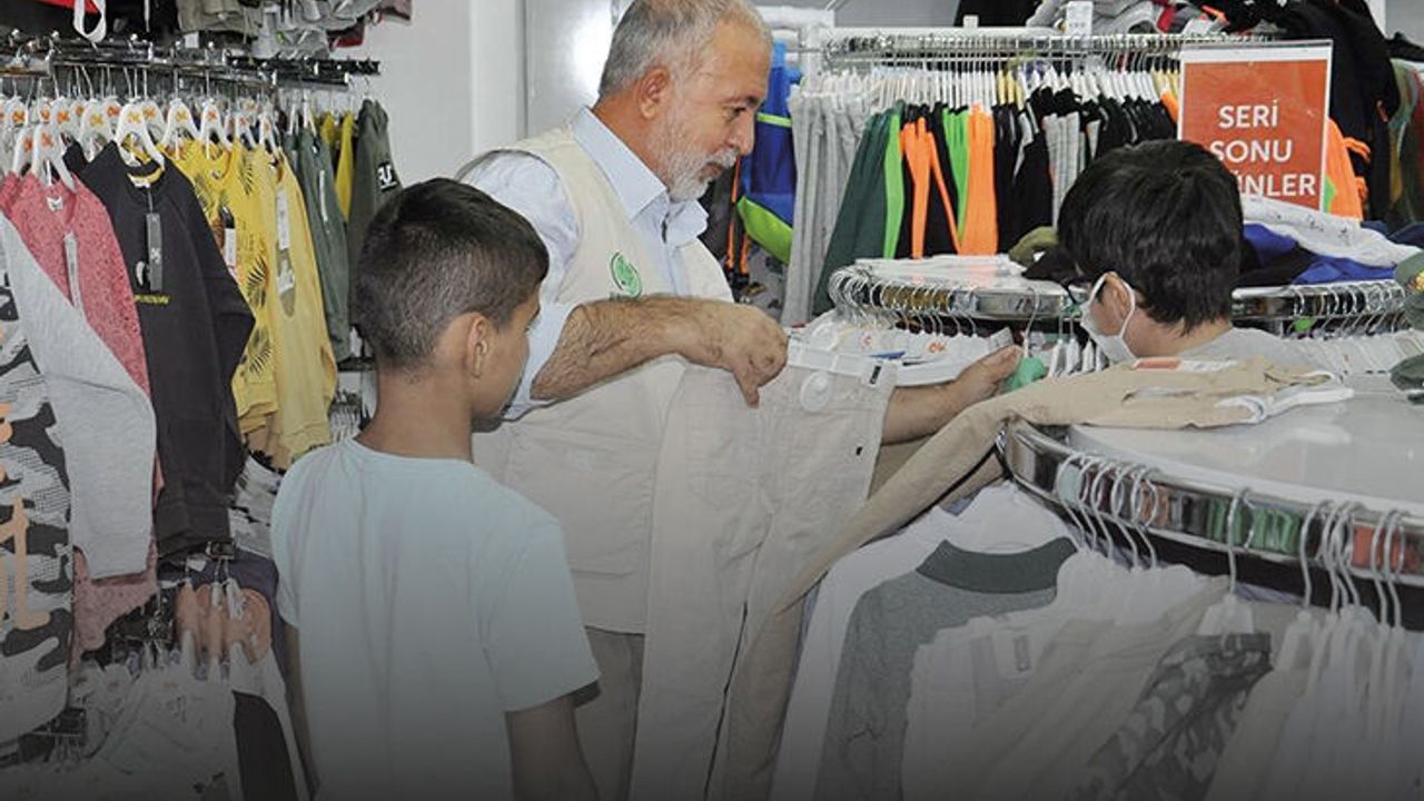 Yetim çocukların aileleriyle birlikte mağazaya gelerek
