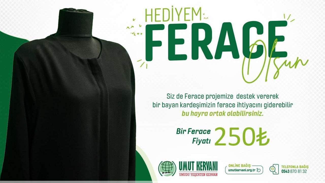 Umut Kervanı İnsani Yardım Vakfı, düzenli olarak yardım ulaştırdığı çok sayıda aileden örtünmek isteyen ancak maddi imkânsızlıklar sebebiyle örtünemeyen bayanlara destek vermek amacıyla "Hediyem Ferace Olsun" projesi başlattı.