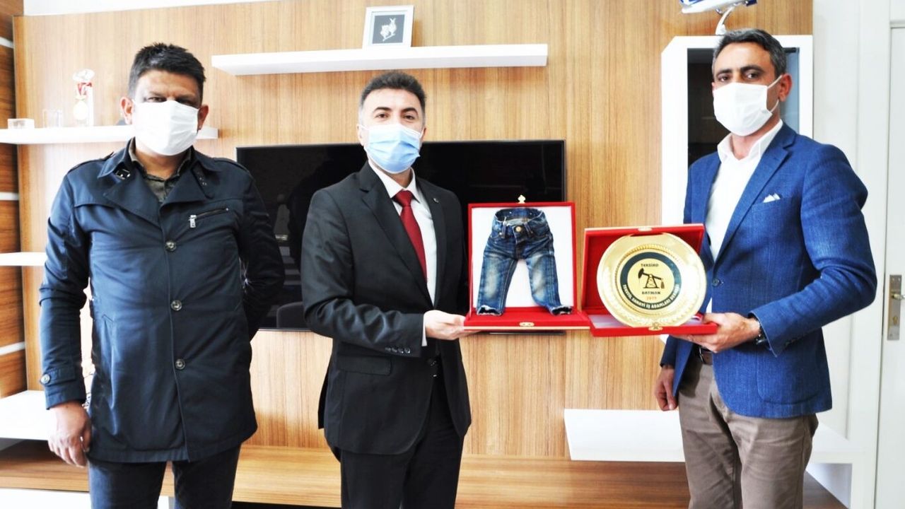kabulünden dolayı teşekkür edip tekstil sektörünü temsilen Demir’e plaket ve