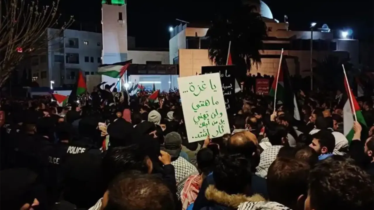 Üst üste onuncu gün binlerce Ürdünlü, başkent Amman'daki işgal büyükelçiliği önünde, elçiliğin kapatılması ve Vadi Arabe Anlaşması'nın iptali talebiyle protesto gösterilerine devam etti.