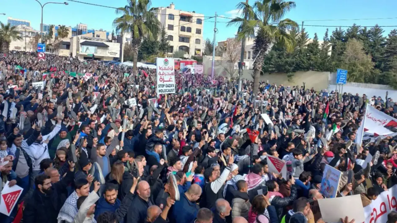 Gazze'de masum sivillerin ABD silahlarıyla katledildiğine dikkat çeken katılımcılar, Ürdün hükümetine Siyonist varlıkla tüm ilişkileri kesmesi, Amerika'nın Ürdün büyükelçisini sınır dışı etmesi ve ABD ile ortak savunma anlaşmasını iptal etmesi çağrısında bulundu.