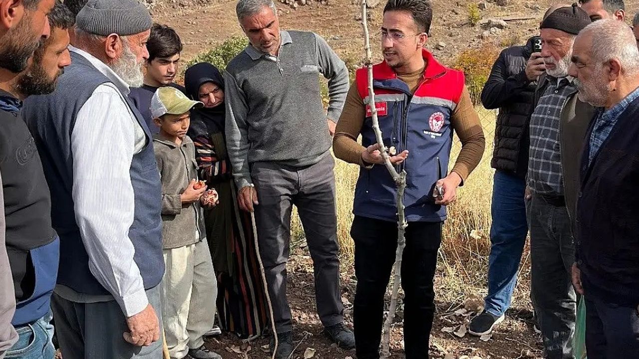 Şirvan ilçesine bağlı İncekaya köyünde gerçekleştirilen eğitimde, fıstık ağaçlarının sağlıklı gelişimi için doğru budama teknikleri hem teorik hem uygulamalı olarak öğretildi.