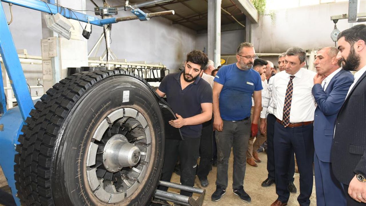 Kardeşler Oto Lastik Kaplama Atölyesi’ni ziyaret ederek incelemelerde bulundu. Tesiste