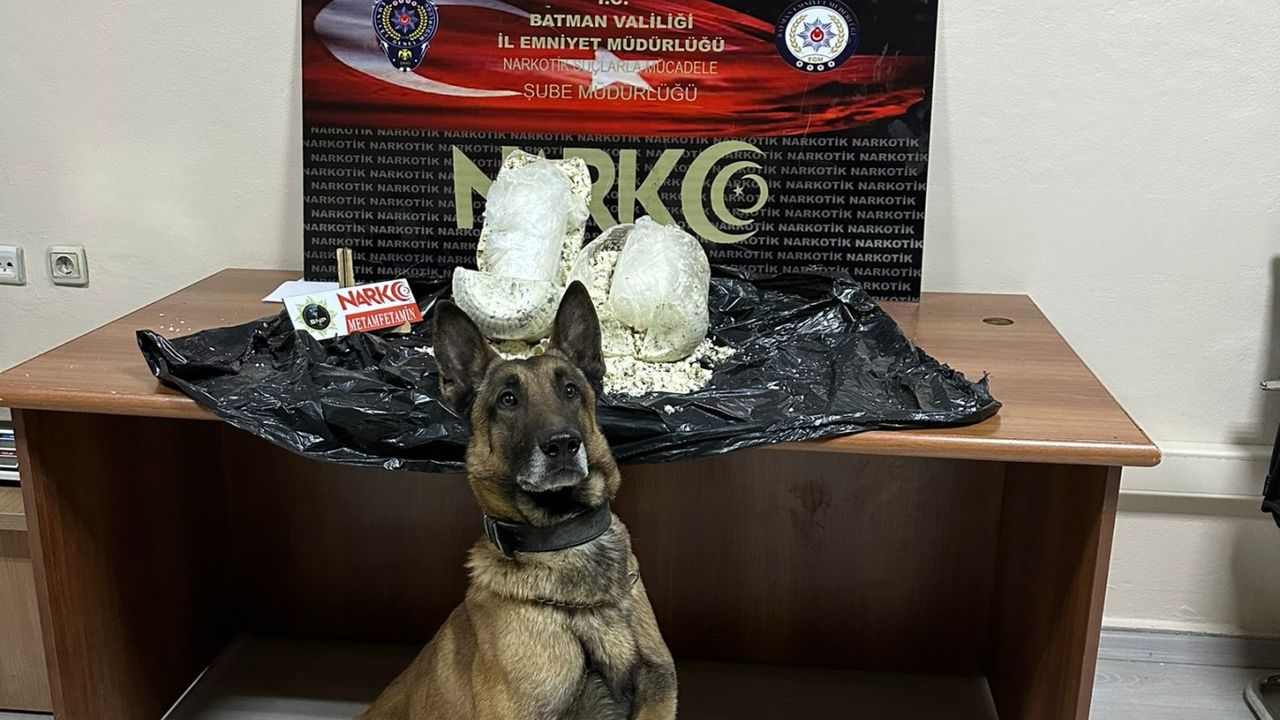 İl Emniyet Müdürlüğünden yapılan açıklamaya göre, "Narkotik suçlarla mücadele şube müdürlüğümüze bağlı ekipler olarak, otobüs firması ile gelen ve içerisinde hurma, peynir ve bal olan telis çuval içerisinde yapılan aramada; İçerisinde peynir bulunan şeffaf plastik bidon içerisinde 2 şeffaf poşete sarılı halde 2 kilo ağırlığında metamfetamin maddesi ele geçirilmiştir." denildi.