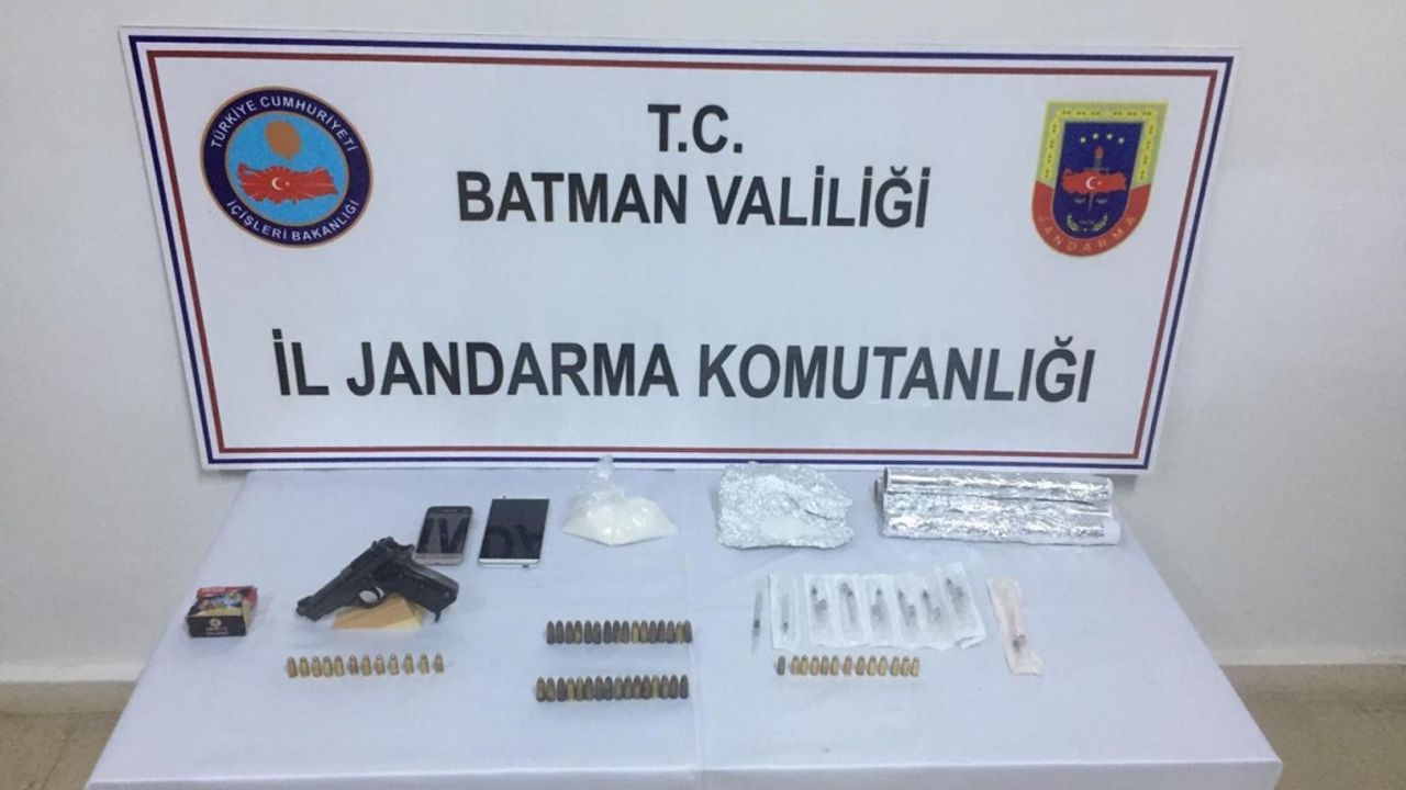 Açıklamada, 'Batman İl Jandarma Komutanlığının bölücü terör örgütünün finans kaynakları arasında bulunan uyuşturucuyla mücadele çalışmaları kapsamında; ilimiz merkezde (1) adreste yapılan aramada (144) gram metamfetamin maddesi, (1) adet tabanca, (1) adet havalı tüfek, 64 adet tabanca fişeği ele geçirilmiştir.' denildi.