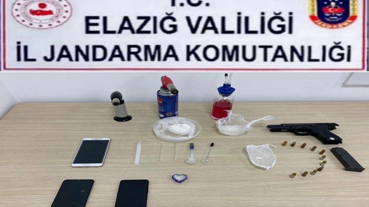 Elazığ Jandarma ekipleri tarafından yürütülen çalışmalar sonucunda Elazığ Merkez Güneykent Mahallesi’nde ikamet eden N. K.'nin uyuşturucu madde ticareti yaptığı bilgisi üzerine operasyon yapıldı. Evde yapılan aramada 120 gram metamfetamin, 1 adet ruhsatsız 9 mm çapında tabanca, 11 adet fişek ve uyuşturucu içiminde kullanılan aparat ele geçirildi. N.K adlı şahıs ekipler tarafında gözaltına alındı. Adli sürecin devam ettiği öğrenildi.