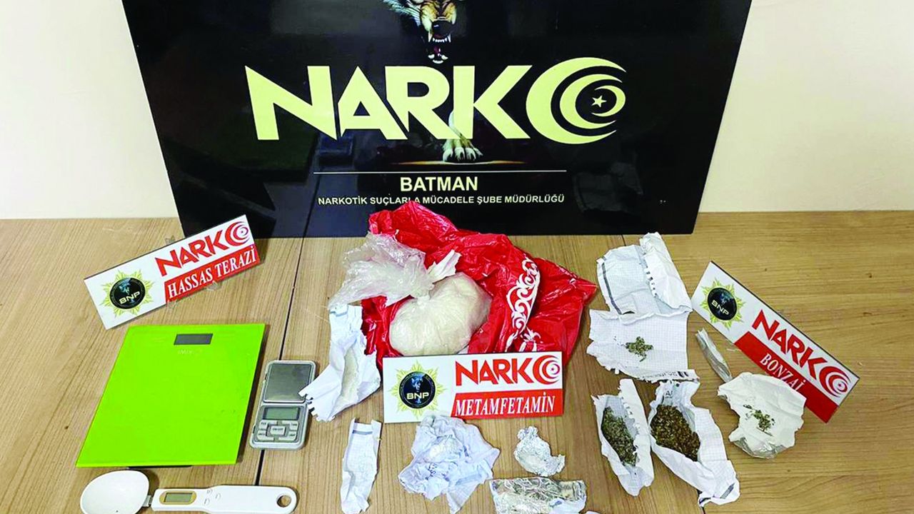 Emniyet açıklamasında, "Uyuşturucu madde ticareti yapan ve kullanan şahıslara yönelik yapılan çalışmalarda, ilimiz Fatih mahallesi 3013 sokakta bulunan bir ikamette yapılan aramada, 6 parça halinde daralı ağırlığı 12,43 gram Sentetik Kannabinoid (Bonzai) maddesi, 6 parça halinde daralı ağırlığı 455 gram metamfetamin maddesi, 3 hassas terazi ele geçirilmiştir." denildi.