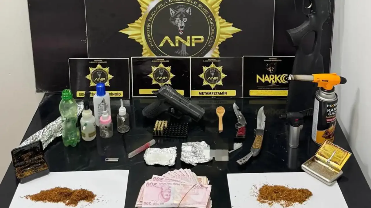 Konu hakkında İl Emniyet Müdürlüğünden yapılan açıklamada, "Narkotik Suçlarla Mücadele Şube Müdürlüğü Ekiplerince yapılan çalışmalarda; Y.E.Ç isimli şahıstan 32.85 gram sentetik kannobinoid maddesi, 6 adet uyuşturucu kullanma aparatı, 1 adet uyuşturucu paketlemede kullanıldığı değerlendirilen alüminyum folyo, 1 adet ruhsatsız tabanca,2 adet bıçak,1 adet havalı tüfek,1 adet çözelti için kullanıldığı değerlendirilen aseton, uyuşturucu madde ticaretinden elde edildiği değerlendirilen 33.100 lira ele geçirilmiş olup şahıs çıkarıldığı mahkemece tutuklanarak cezaevine sevk edilmiştir." denildi. (İLKHA)