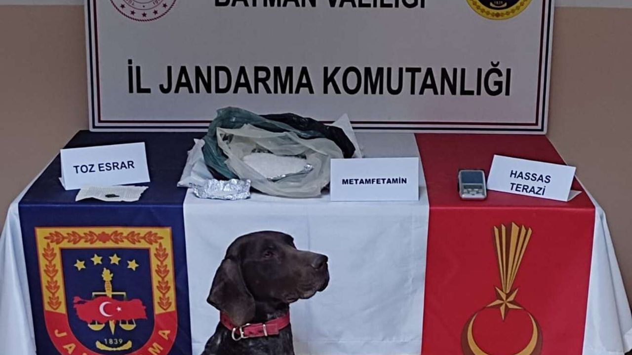 bir evde yapılan aramada bir kilo 10 gram metamfetamin, 6 gram toz