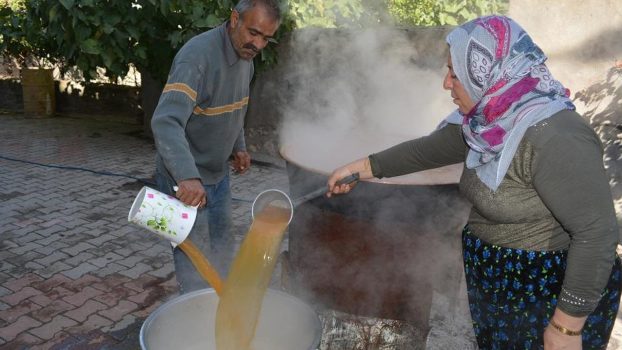 Üzümden yaptıkları pekmezi satarak geçimlerini sağladıklarını belirten ilçe sakinlerinden Korkut, 'Önce bağ bozumu ile üzümleri topluyoruz. Evde hazırladığımız alanda üzümleri sıkarak üzüm özünü süzgeçlerden geçirerek pislikten arındırıyoruz. Odun ateşinde kaynatıyoruz. Kaynadığı esnada üste biriken köpükleri alıyoruz, o köpüklerle birlikte içindeki mikroplar hepsini dışarı atıyoruz. Kaynama ve temizliği bittikten sonra kazandan çıkarıp dinlendirerek süzüyoruz. Süzdüğümüzde kaynarken çıkmayan pislik alta iniyor. Bir deha kazana doldurarak tekrar kaynatarak pekmez yapıyoruz.' dedi.