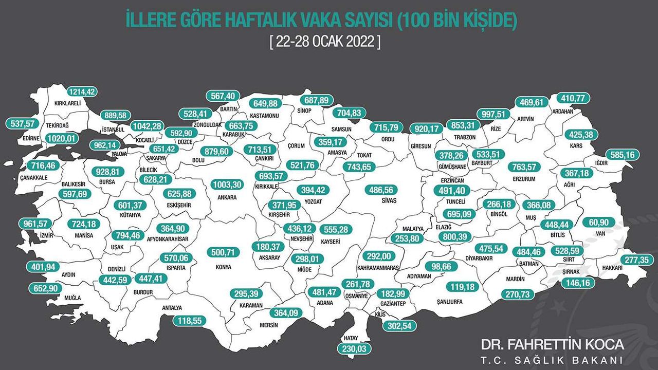 sayısı açıklandı. Sağlık Bakanı Fahrettin Koca, illere göre haftalık vaka