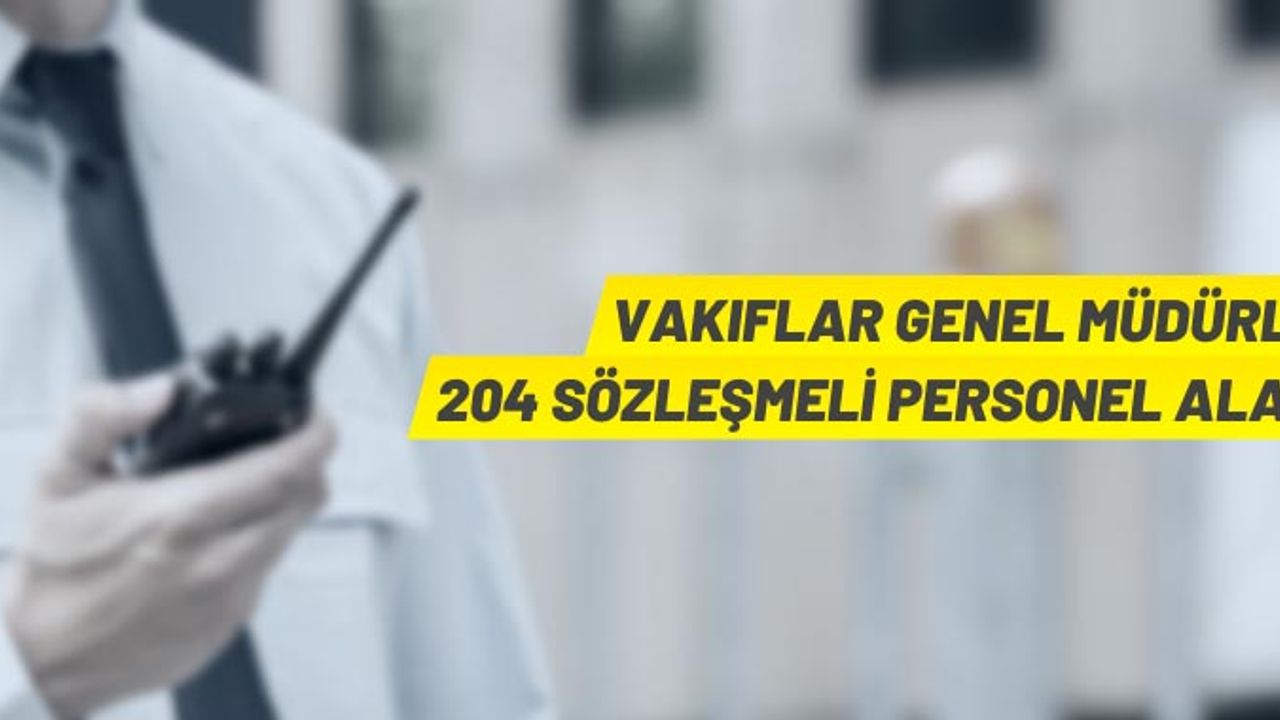 Vakıflar Genel Müdürlüğü merkez ve taşra teşkilatında 657 sayılı Devlet Memurları Kanunu ve Sözleşmeli Personel Çalıştırılmasına İlişkin Esaslar çerçevesinde 2020 KPSS(B) grubu puan sıralaması esas alınmak suretiyle yazılı ve sözlü sınav yapılmaksızın 107 Koruma ve Güvenlik Görevlisi, 97 Destek Personeli (61 Temizlik Görevlisi ve 36 Şoför) olmak üzere toplam 204 sözleşmeli personel alınacak.