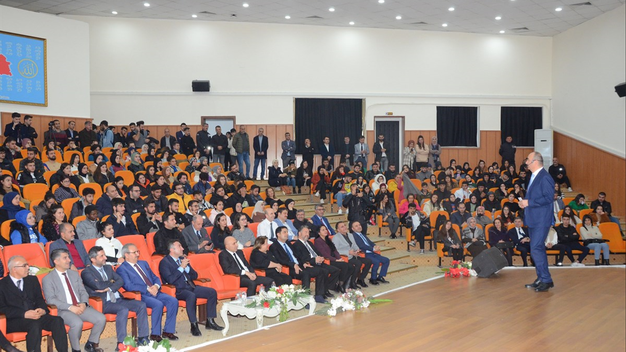 Kampus konferans salonunda düzenlenen programda öğrencilerle bir araya gelen