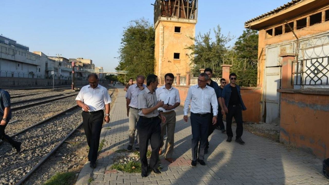 Tren istasyonunda incelemelerde bulunan Vali Deniz, Gar Müdür Vekili Halil Saruhan'dan yürütülen çalışmalar hakkında bilgi aldı.