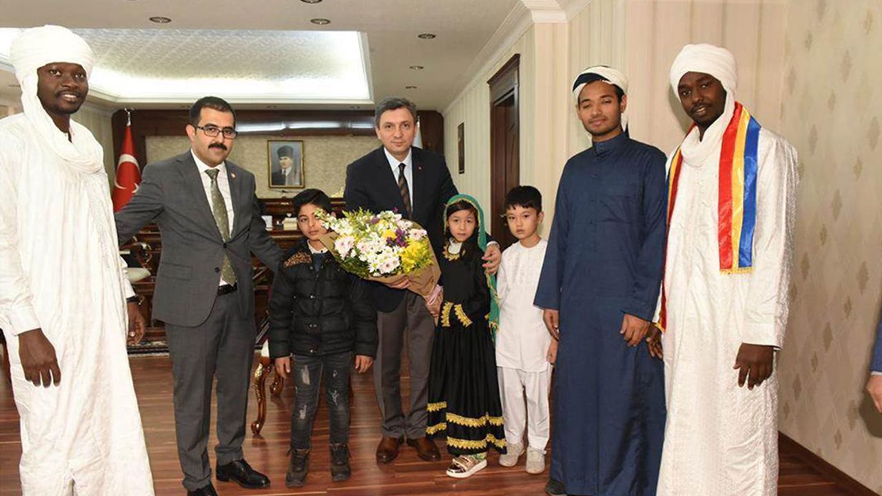 Batman'da eğitim gören göçmen öğrencileri makamında kabul etti.