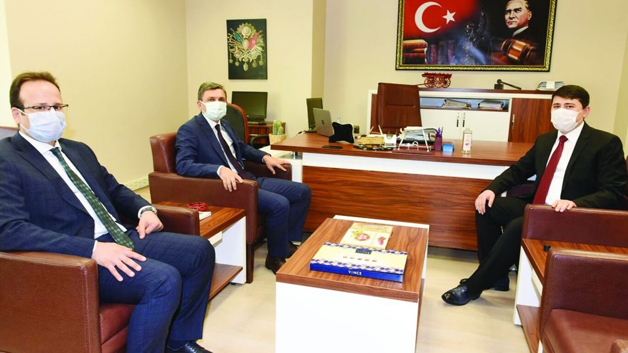 İlimize yeni atanan Adalet Komisyonu Başkanı Fatih YILDIRIM, İdare Mahkemesi Başkanı Mehmet KÜRKLÜ, 1. Ağır Ceza Mahkemesi Başkanı Yahya ALICI, 1. Ağır Ceza Mahkemesi Heyet Başkanı Mustafa Alper KESİK, 3 Ağır Ceza Mahkemesi Başkanı Aydın CILGIN ve Cumhuriyet Başsavcı Vekili Eray AKKAVAK’ı ziyaret eden Vali, yeni görev yerlerinin hayırlı olması temennisinde bulunarak kendilerine başarılar diledi. Mahkeme başkanları ziyareti sırasında Valimize, Cumhuriyet Başsavcısı Ömer METE eşlik etti.