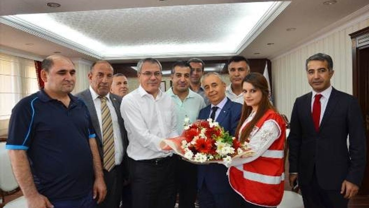 Türk Kızılay Batman Şubesi tarafından düzenlenen iftar programına katılmak üzere Batman'a gelen Kızılay Genel Merkez Yürütme Kurulu Üyelerinden oluşan bir heyet Vali Ahmet Deniz'i ziyaret etti.