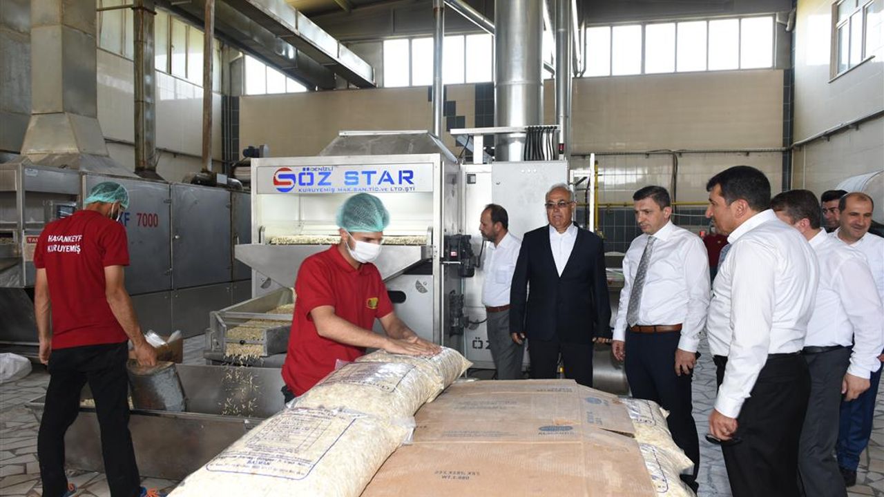 Vali Şahin, OSB'de üretim yapan kuruyemiş tesisinde incelemelerde bulundu.