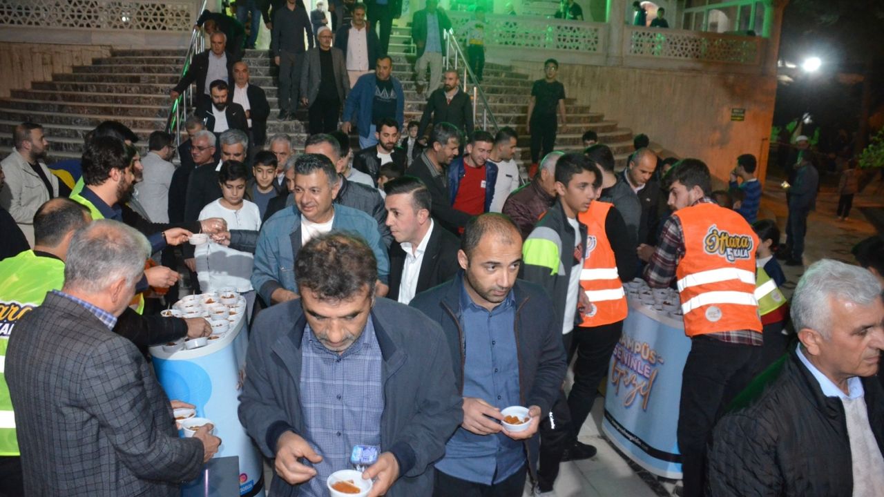 Şevket Başak Camisinde teravih namazının ardından vatandaşlara tatlı ikramında
