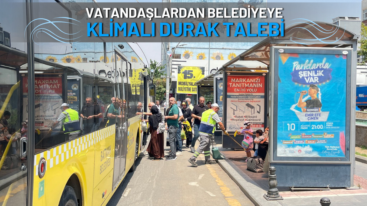 Batman’da etkisini artıran yaz sıcakları, vatandaşları zor durumda bırakıyor. Özellikle toplu taşıma duraklarında otobüs beklerken sıcaktan bunalan halk, Batman Belediyesi’ne klimalı durak yapılması çağrısında bulundu. Vatandaşlar, bu hizmetin hem konfor hem de sağlık açısından büyük fayda sağlayacağını belirtiyor.