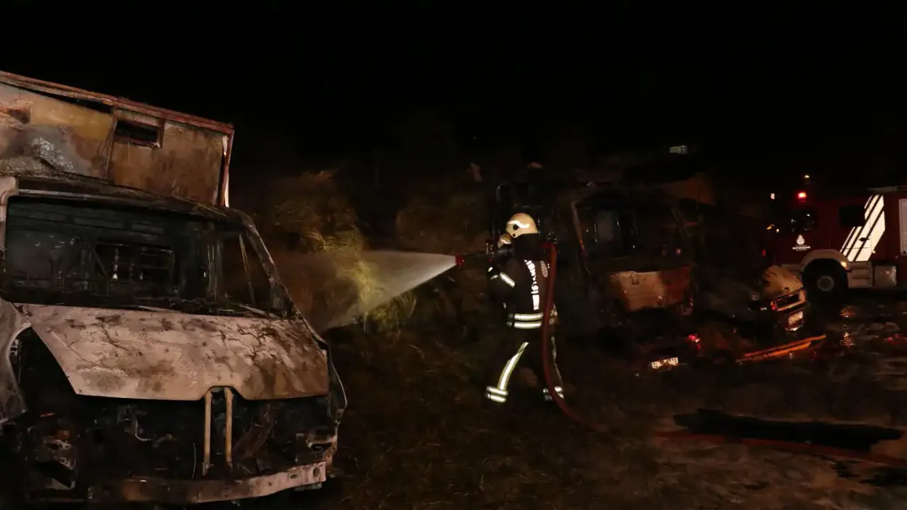 kamyonet ile farklı bir kişiye ait olan bir kamyonet küle döndü. Bölgede