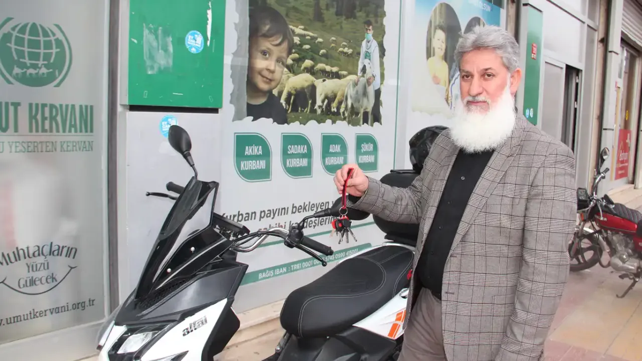 Umut Kervanı Batman Derneği Başkanı Nurettin Teymur, yaptığı açıklamada, ismini vermek istemeyen bir hayırseverin 80 bin lira değerindeki motosikletini Gazze'ye yardım göndermek amacıyla bağışladığını duyurdu.