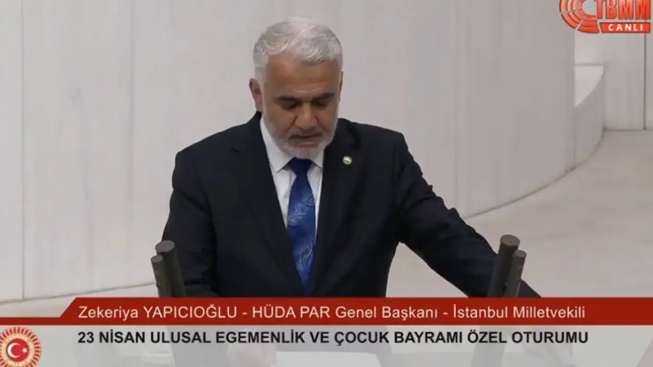 TBMM Genel Kurulu'nda TBMM'nin açılışının 104'üncü yıldönümüne özel gerçekleştirilen oturumda Meclis Başkanı Numan Kurtulmuş'tan sonra grupları bulunan partilerin grup başkanlarına söz verildi. Grup başkanlarının konuşmalarından sonra Meclis'te temsil edilen partilerin genel başkanlarına da 3'er dakika söz verildi. Bu kapsamda HÜDA PAR Genel Başkanı ve İstanbul Milletvekili Zekeriya Yapıcıoğlu'na söz verildi.