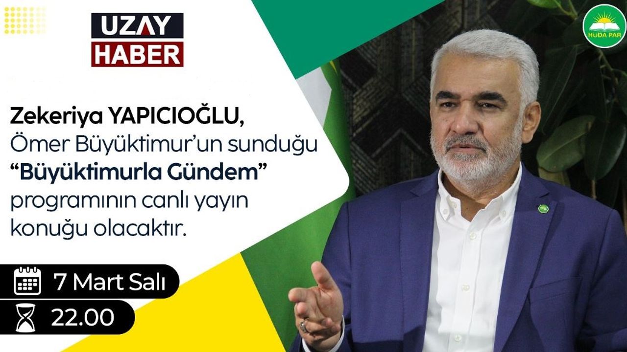 Zekeriya Yapıcıoğlu 7 Mart salı günü 22.00’da Ömer Büyüktimur’un sunduğu “Büyüktimurla Gündem” programının canlı yayın konuğu