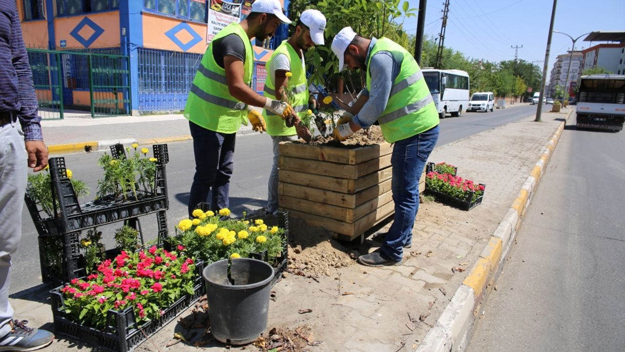 Yapılan yeni çiçeklendirme çalışması ile İstasyon caddesindeki orta refüje estetik bir görünüm de kazandıran ekipler, çiçeklerle süslenen Belediye kavşağındaki çiçek aralarında, yabani otların temizliğini gerçekleştirdi. Öte yandan Kine em Parkında çim ekimine giden ekipler, GAP Mahallesi 2504 sokaktaki parkta ise kumlama çalışması yürüttü.