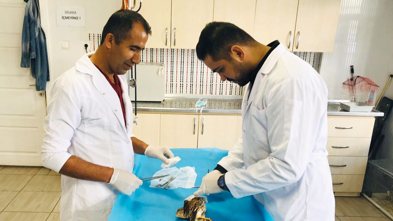 kesikler nedeniyle köz kapakları yırtılan yaralı atmaca Belediye Veteriner