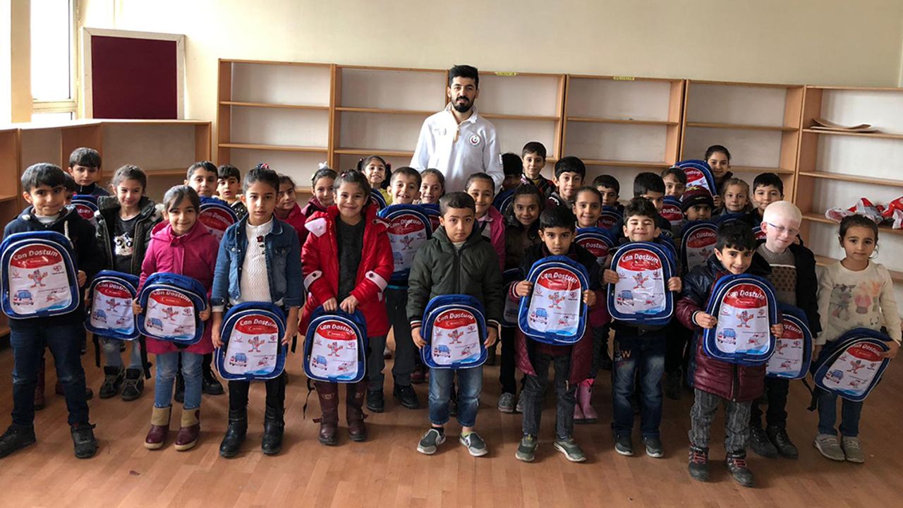 öğrenciye çanta, kalemlik, boya kalemi, kurşun kalem, silgi, kalemtıraş,