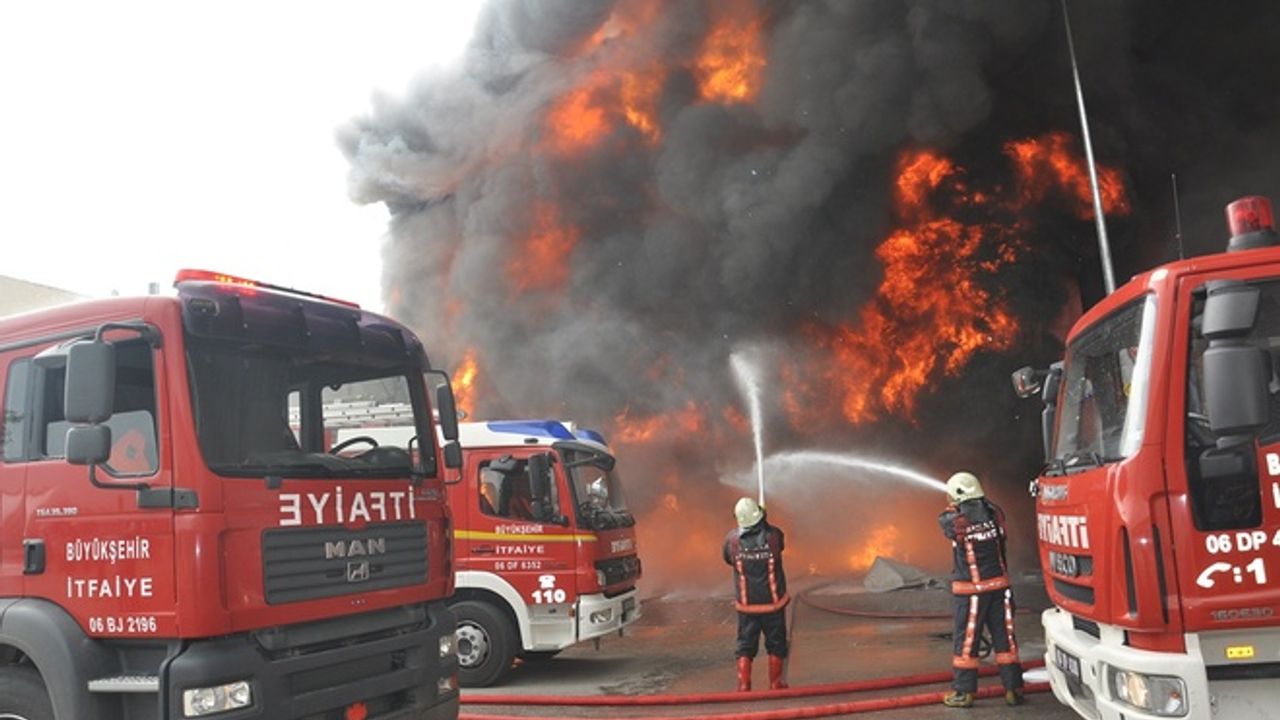 Gölbaşı'nda bir yatak fabrikasında, bilinmeyen bir sebeple yangın çıktı.