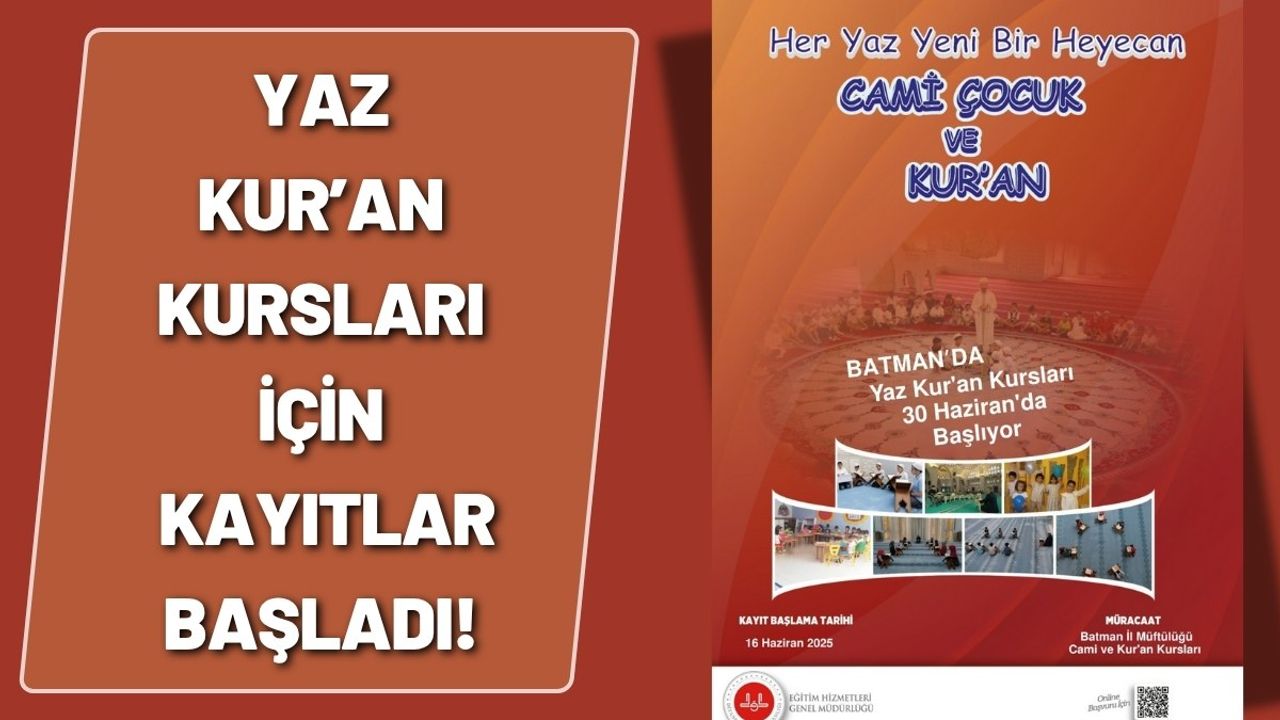 Batman’da her yaz olduğu gibi bu yıl da çocuklar camilere koşacak. Diyanet İşleri Başkanlığı koordinesinde düzenlenen Yaz Kur’an Kursları için kayıtlar bugün başladı. Kurslar, 30 Haziran – 15 Ağustos tarihleri arasında tek dönem halinde gerçekleştirilecek. Başvurular, 16 Haziran’dan itibaren cami ve Kur’an kurslarına yüz yüze ya da online olarak yapılabilecek.
