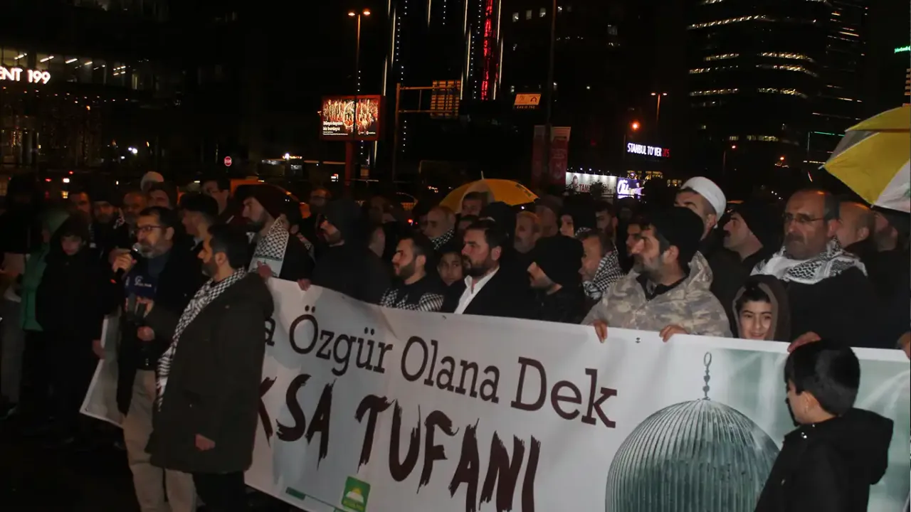 HÜDA PAR İstanbul İl Başkanlığı, siyonist işgalcilerin Gazze'ye ve Refah kentine yönelik sürdürdüğü saldırıları telin etmek amacıyla konsolosluk önünde yoğun katılımla yürüyüş düzenledi.