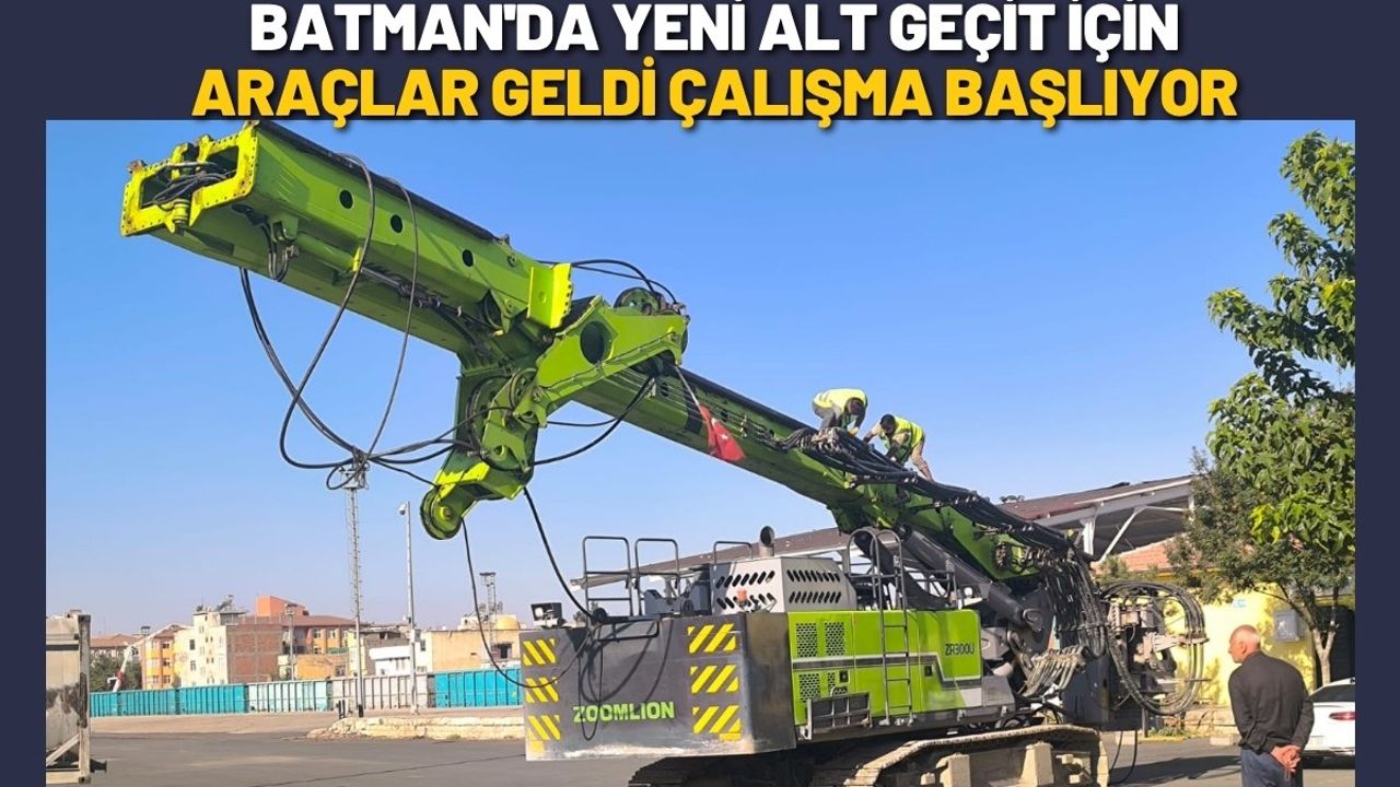 TCDD Malatya 5. Bölge Müdürlüğü tarafından ihalesi tamamlanan proje kapsamında, alt geçit inşaatında kullanılacak dev sondaj makinesi ve çeşitli inşaat teçhizatları Batman’a getirildi. Görsellerde yer alan yeşil renkli “Zoomlion” marka ağır iş makinesi, zemin delme ve güçlendirme çalışmalarında kullanılacak. Ayrıca şantiyeye, demir donatı boruları, beton kalıpları ve alt yapı boruları da yerleştirildi.