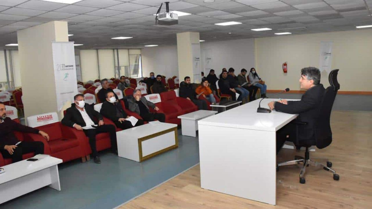 bulunan toplantı salonunda gerçekleşen bilgilendirme toplantısına mesleki