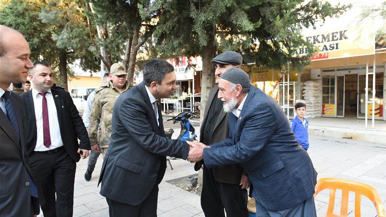 sonra ilçe esnafını ziyaret eden Vali Şahin, vatandaşlarla bir araya gelerek