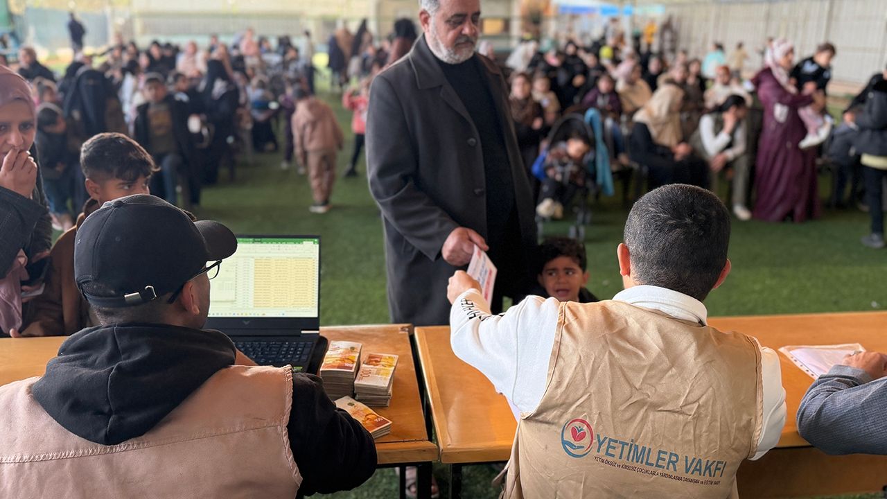 Bu kapsamda, hayırseverlerin desteğiyle Yetimler Vakfı tarafından Gazze'de yaşayan yetimlere yetim aylıkları ulaştırıldı.