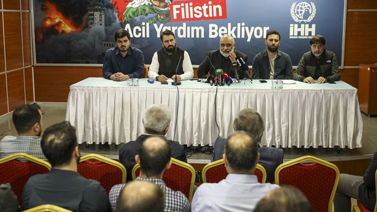 İHHİnsani Yardım Vakfı, 7 Ekim'de başla yan "Aksa Tufanı" sonrasında havadan yoğun bombardımana tabi tutulan Gazze'de yaşanan insani drama dikkat çekmek amacıyla basın toplantısı düzenledi.