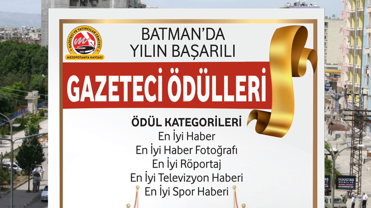 Batman il ve ilçelerini kapsayan B-MGYC’nin 1. Başarı Ödülleri Yarışması’na başvurular 20 Aralık’ta sona erecek, sonuçlar ise 10 Ocak 2020 Çalışan Gazeteciler Günü'nde açıklanarak dereceye girenlere ödülleri törenle verilecek. En İyi Haber, En İyi Fotoğraf, En İyi Röportaj, En İyi Spor ve En İyi Televizyon Haberi olmak üzere 5 dalda düzenlenecek yarışmaya katılım için adaylar, yarışmaya katılacağı eserin daha önce yayımlanmamış bir örneğini, Mezopotamya Havzası Gazeteciler ve Yayıncılar Cemiyeti'nin [email protected] e-posta adresine mail yolu ile göndererek başvuru yapacak.