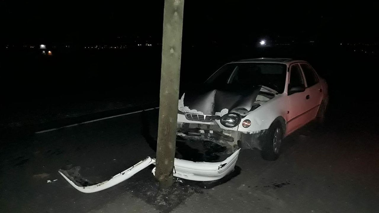 otomobil, yol ortasındaki elektrik direğe çarptı. Otomobilin direğe çarpmasıyla