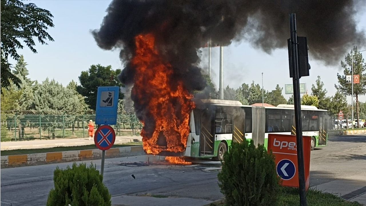 motor kısmında yangın çıktı. Yangını fark eden şoför aracı durdurarak yolcuları